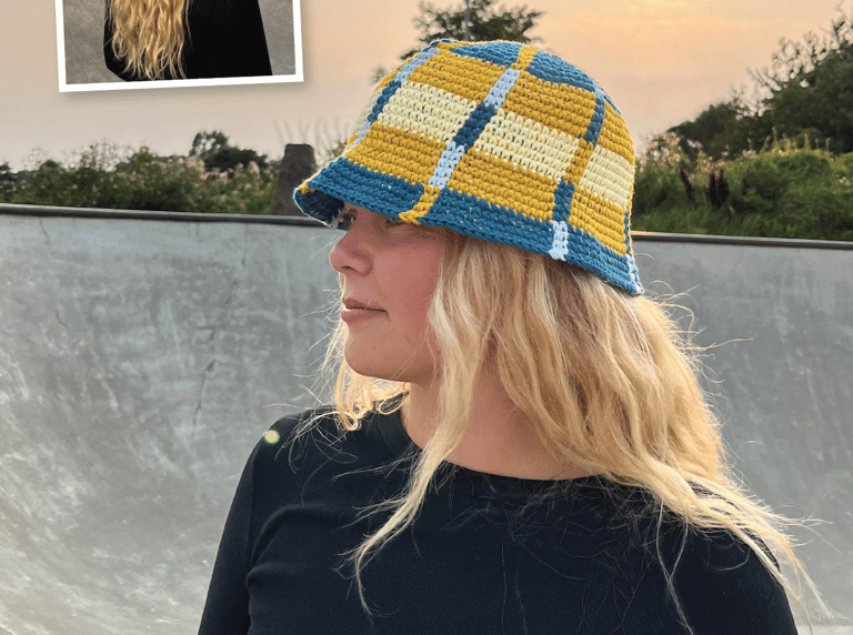 Celebrate summer in style with this colourful crochet bucket hat inspired by Swedish tones. Made with soft cotton yarn and intarsia colourwork, itβs perfect for sunny days, festivals, or cheering on your team. One size, double-stranded, with a gently shaped brim and bold plaid pattern.